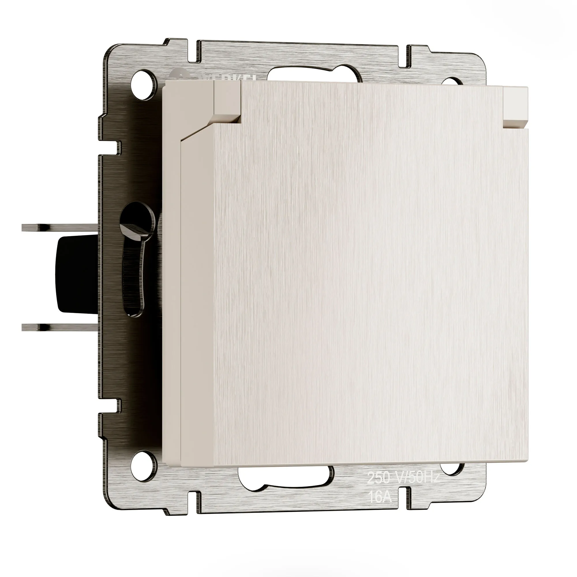 Розетка влагозащищенная с заземлением, крышкой и шторками перламутровый рифленый Werkel – надежность и безопасность для любых условий