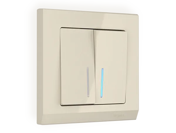 • Встроенная белая подсветка — мягко обозначает выключатель в темноте, делая его легко находимым без включения основного освещения.