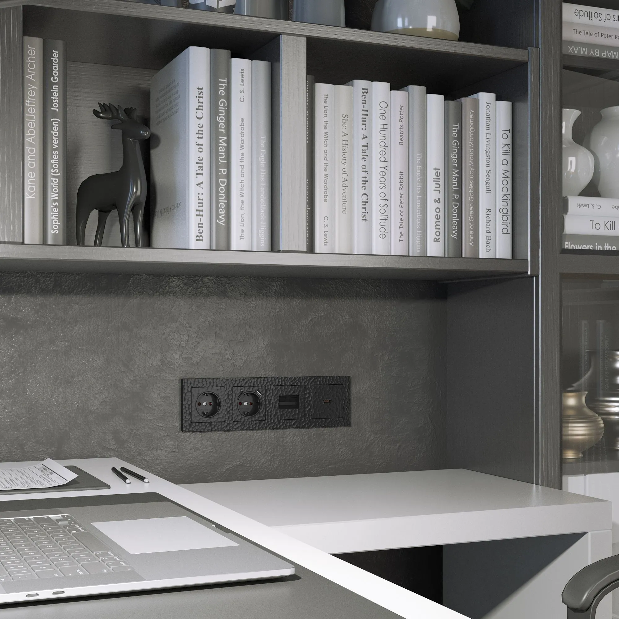 Рельефная поверхность с лёгким объёмным рисунком, напоминающим тонкую насечку или микротекстуру. Это не только эстетично, но и функционально: клавиша не скользит под пальцем, даже при влажных руках, идеально вписывается в любые стили — от скандинавского минимализма до лофта и классики. Черный цвет гармонично сочетается с любыми отделочными материалами, а универсальная совместимость со всеми рамками Werkel позволяет создавать индивидуальные композиции под ваш вкус.