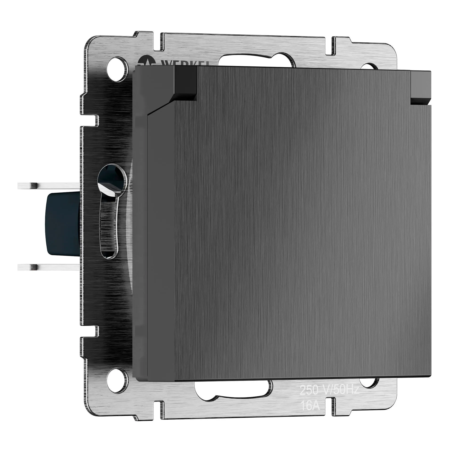 Встраиваемая розетка с заземлением совместима со всеми рамками из коллекций Werkel™, характеризуется удобством использования и обеспечивает надежный контакт.