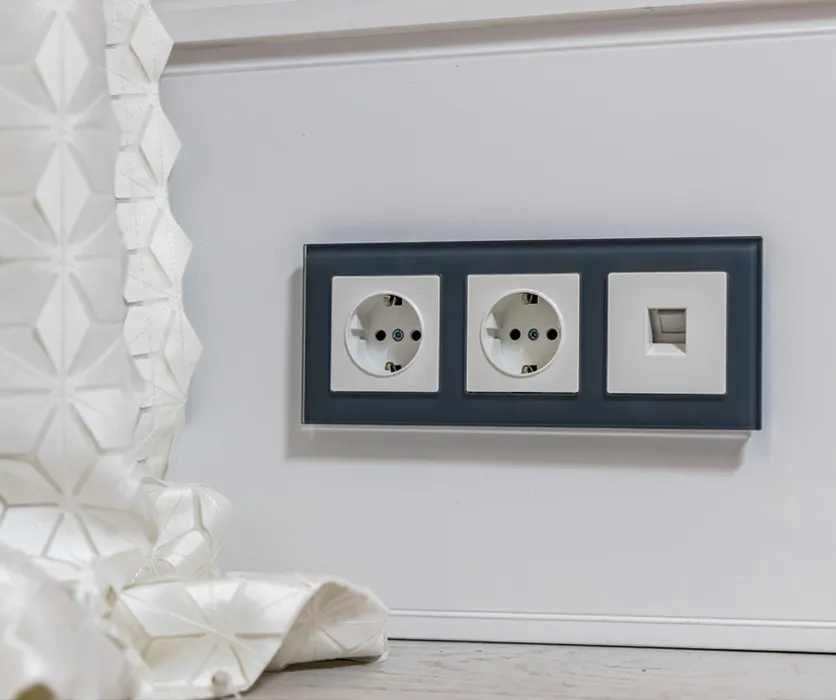 Яркий интерьер дополнили лаконичные белоснежные розетки и выключатели в обрамлении утонченных стеклянных рамок серого цвета серии Favorit от Werkel™. Рамки выполнены из высококачественного и прочного стекла, которое устойчиво к механическим повреждениям и истиранию . Строгие формы рамок гармонично сочетаются как с лаконичными, так и с яркими интерьерами, подчеркивая современный характер дизайна.