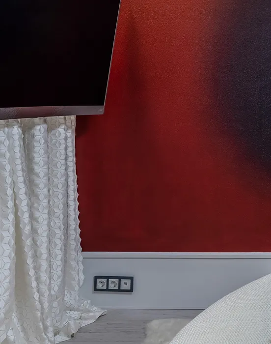 Дизайнеры решили добавить интерьеру жизнерадостности, выбрав эффектный вишневый цвет, который заряжает оптимизмом и придает энергии. Пространство разделили на две функциональные зоны: гардеробную и спальное место. Центральным элементом стала большая круглая кровать с изголовьем, похожим на орган — это решение стало символом креативного подхода к оформлению.